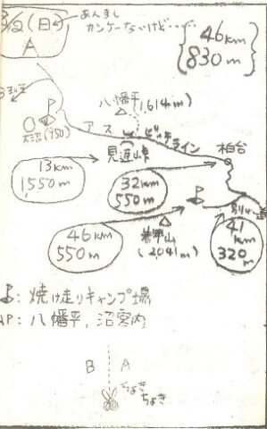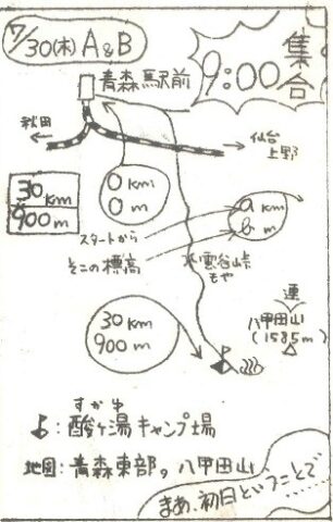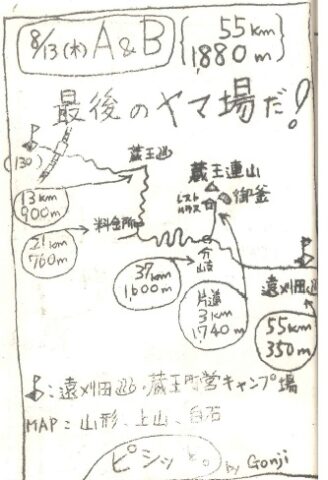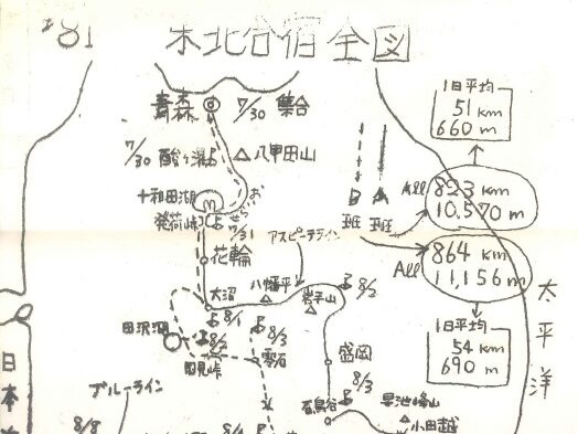 「俺は企画局長として自信を持って今回の計画を立てた。俺は、今ここに居る誰れよりも走って来た。そして、その長いラン生活から得たすべてのものを集大成したものが、今回の夏合宿である。合宿の期間が長過ぎると言っても、例年よりも3日長いだけではないか。距離とか標高差など問題ではない。要は東北を征服できるかどうかだ。とにかく、俺の立てたコースを走破していただきたい。あの中部山岳、そして北海道合宿以上の充実感を必ずや味わえるはずである。」