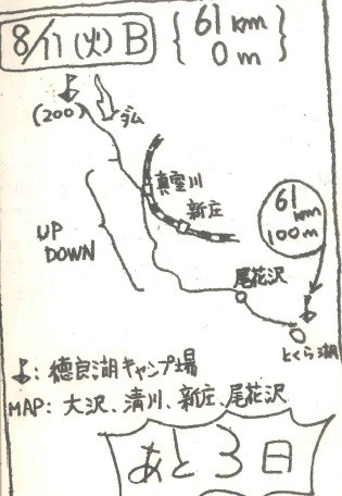5時間にもわたる 論の末、昭和56年度早稲田大学サイクリング・クラブ夏合宿は、主将の最終決断によって、クラブ史上例のない長くそして苛酷なものとなった。東北の山奥に黄色い影が次々と消えて行ったのは、それから半月も経たない頃であったろうか。