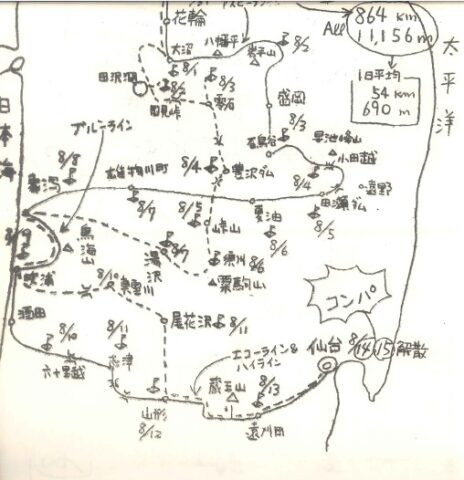 我がクラプが夏合宿を、中部山岳、北海道、東北、山陰と周期的に行うことは伝統となっている。よって、今年の執行部の場合、1年時は中部山岳、2年時は北海道、今年は東北と既に決められていたのである。クラブ規約で成文化されているわけではないが、伝統的にそうなっている。別に疑間を感したことはない。何故、中部山岳を2年連続でやらないのかなどと思ったこともない。